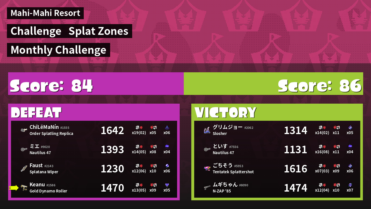 | Medals | #1 Splat Zone Hero #1 Ink Consumer #1 Super Chump User | ||