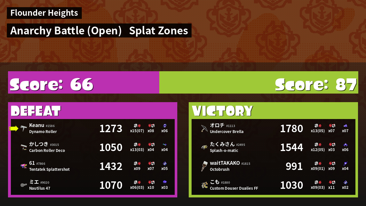 | Mode | Splat Zones - Anarchy Battle (Open) | ||