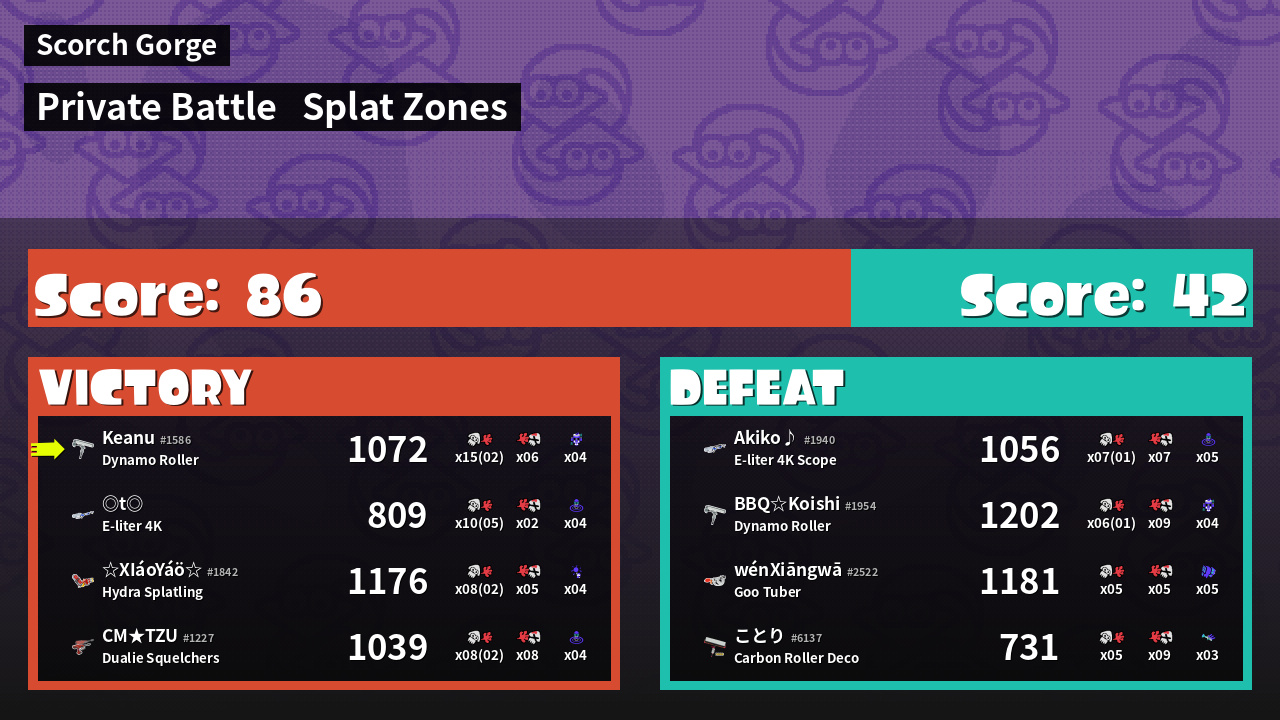 | Medals | #1 Overall Splatter #1 Splat Zone Guard #1 Popular Target | ||