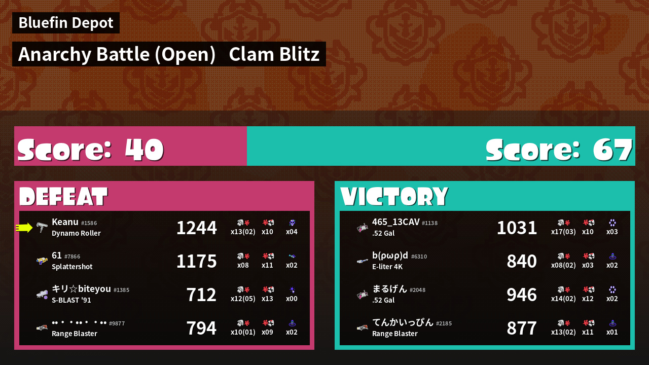 | Mode | Clam Blitz - Anarchy Battle (Open) | ||