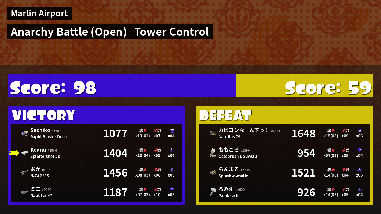 | Mode | Tower Control - Anarchy Battle (Open) | ||