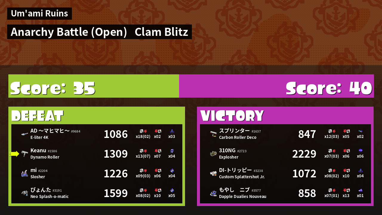 | Mode | Clam Blitz - Anarchy Battle (Open) | ||