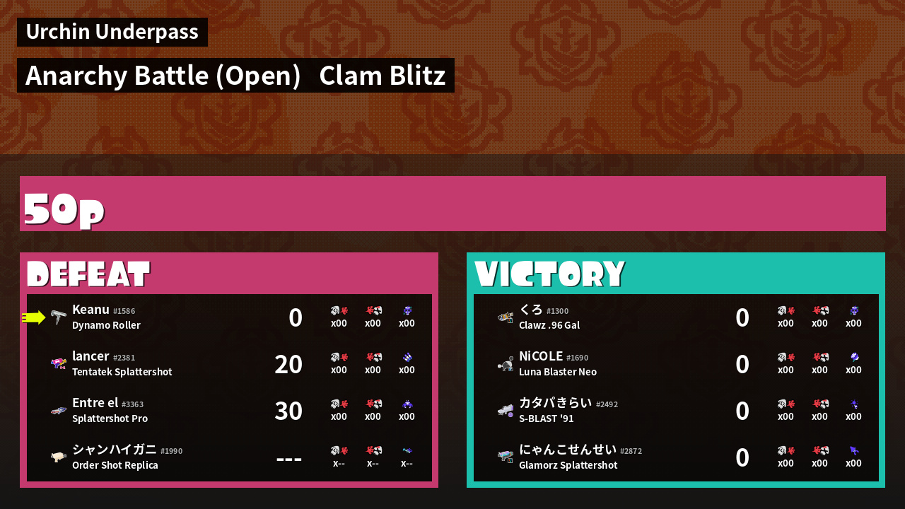 | Mode | Clam Blitz - Anarchy Battle (Open) | ||