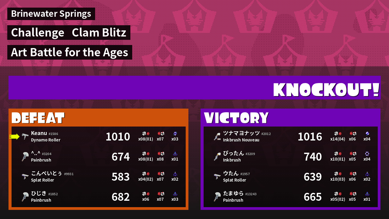 | Medals | #1 Overall Splatter #1 Score Booster #1 Clam Carrier | ||