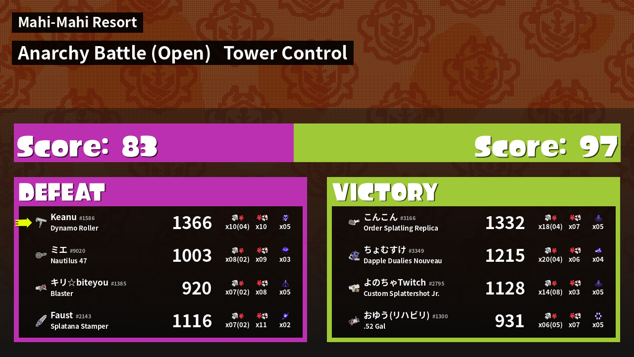 | Mode | Tower Control - Anarchy Battle (Open) | ||