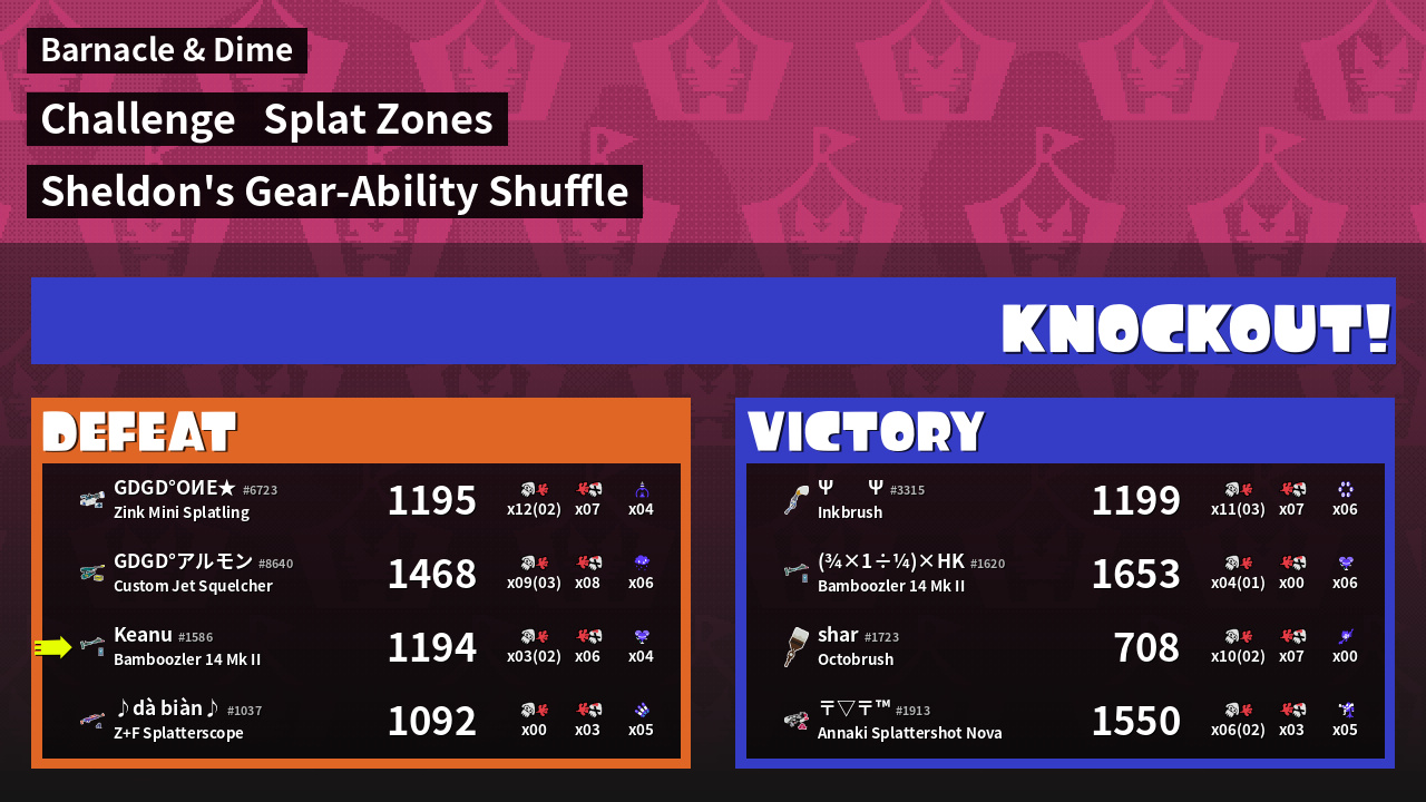| Medals | #1 Splat Zone Inker #1 Super Chump User #2 Splat Zone Guard | ||