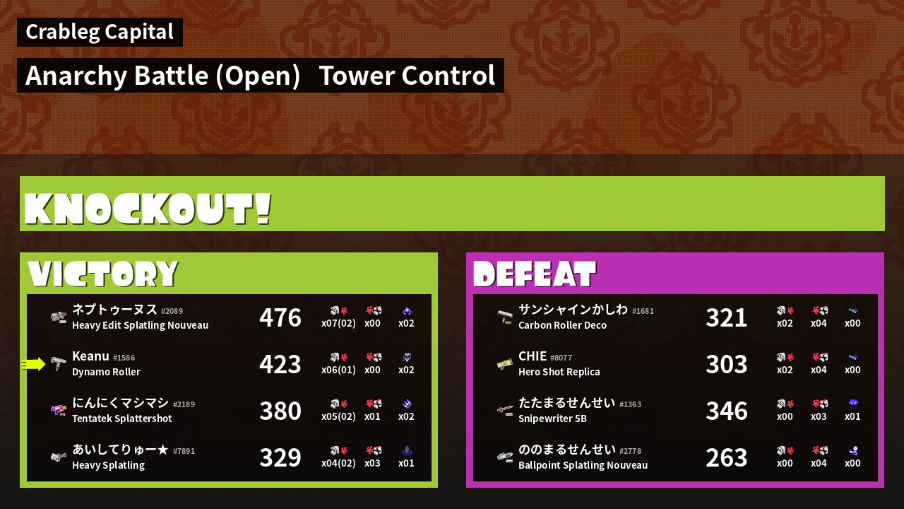 | Mode | Tower Control - Anarchy Battle (Open) | ||