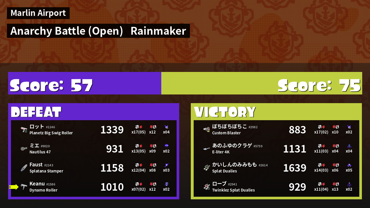 | Mode | Rainmaker - Anarchy Battle (Open) | ||