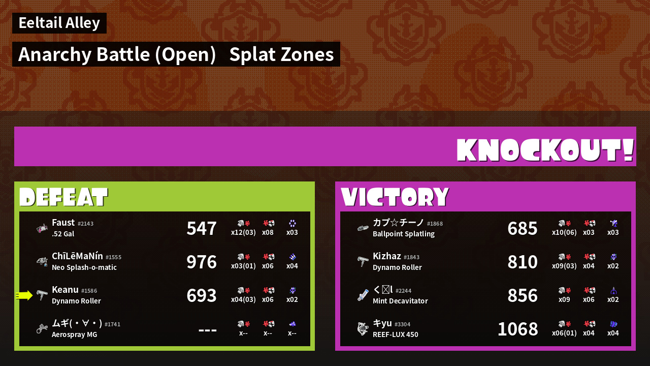 | Mode | Splat Zones - Anarchy Battle (Open) | ||
