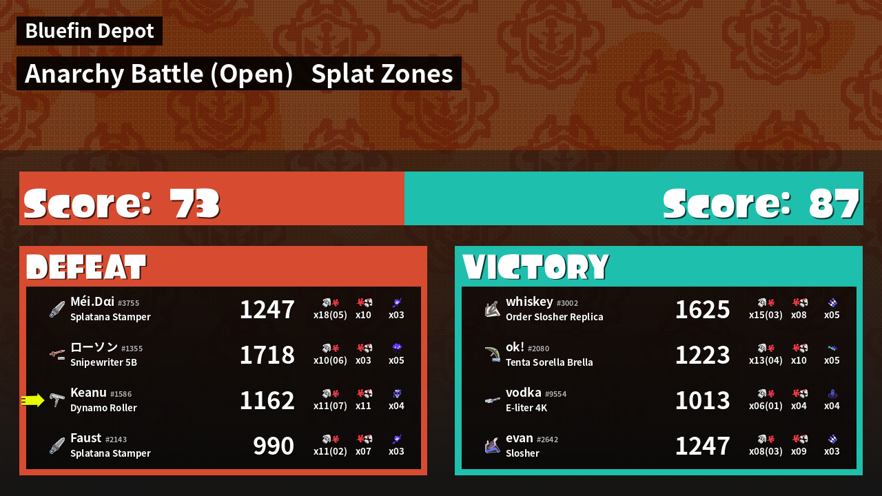 | Mode | Splat Zones - Anarchy Battle (Open) | ||