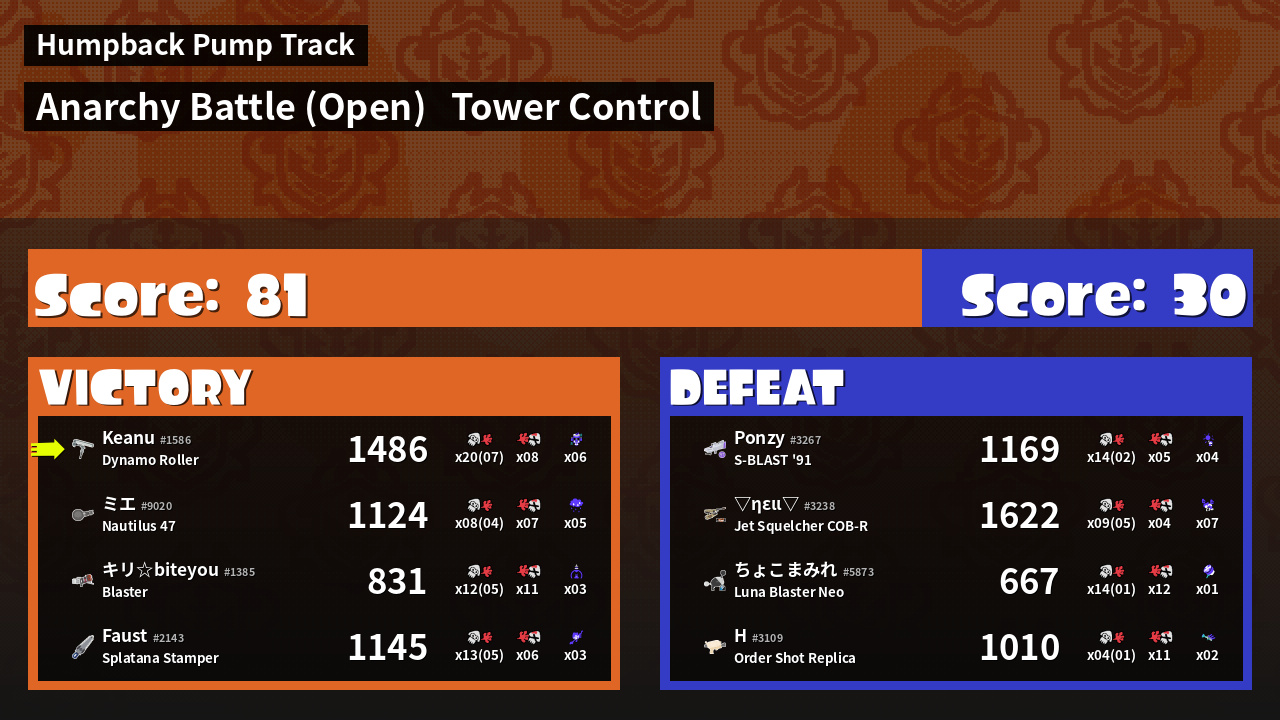 | Mode | Tower Control - Anarchy Battle (Open) | ||