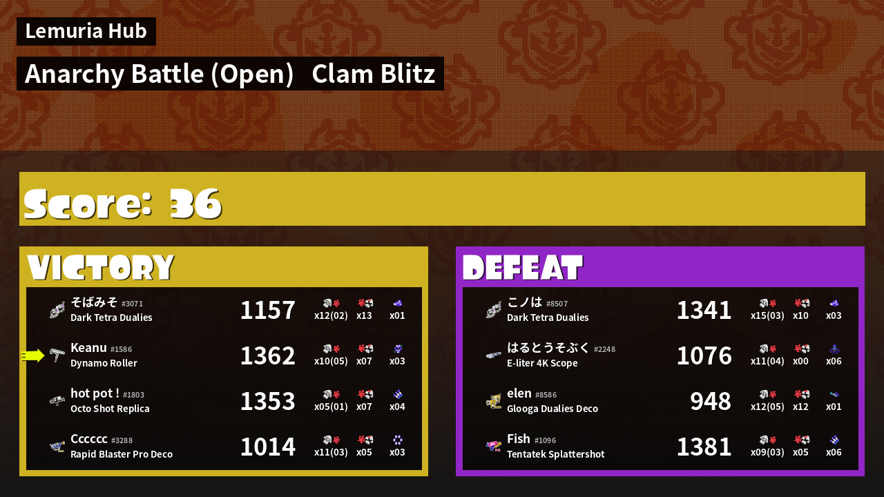 | Mode | Clam Blitz - Anarchy Battle (Open) | ||