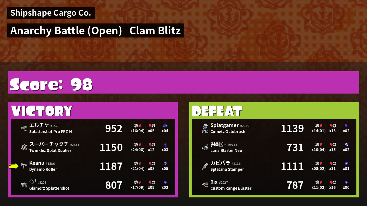 | Mode | Clam Blitz - Anarchy Battle (Open) | ||