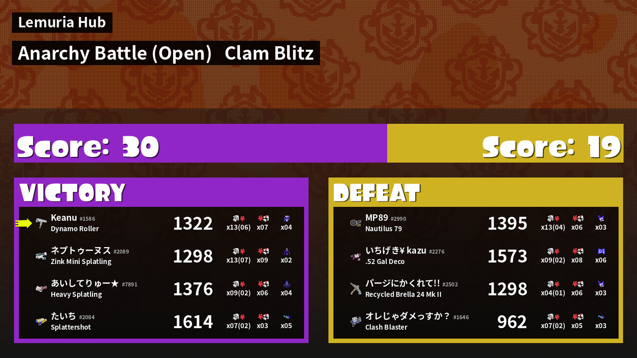| Mode | Clam Blitz - Anarchy Battle (Open) | ||