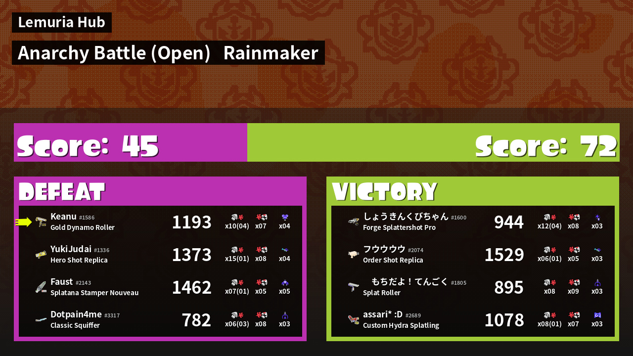 | Mode | Rainmaker - Anarchy Battle (Open) | ||