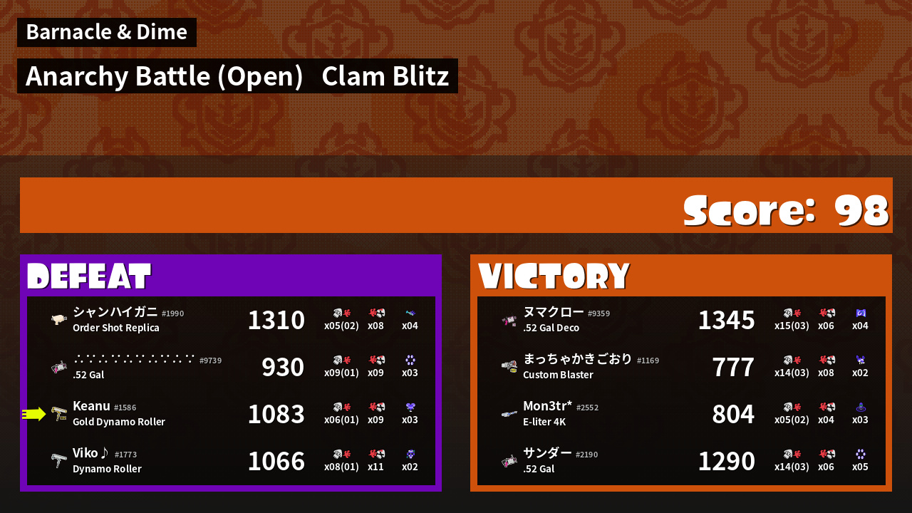| Mode | Clam Blitz - Anarchy Battle (Open) | ||