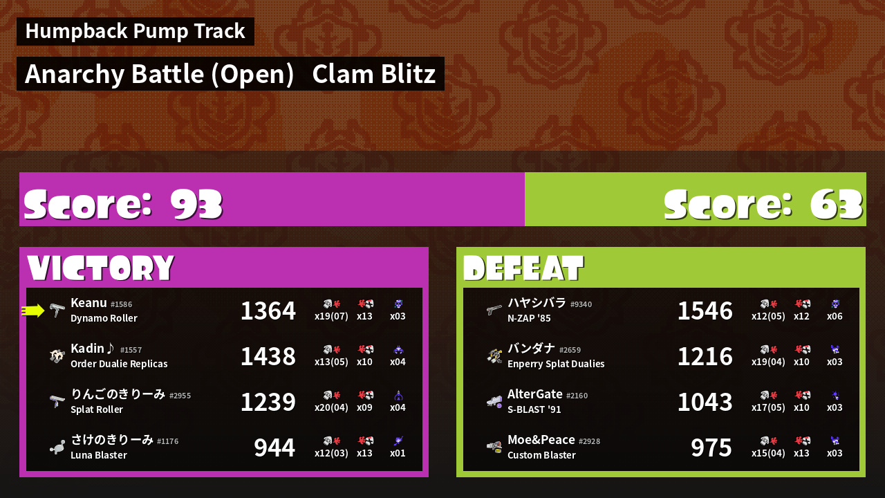 | Mode | Clam Blitz - Anarchy Battle (Open) | ||