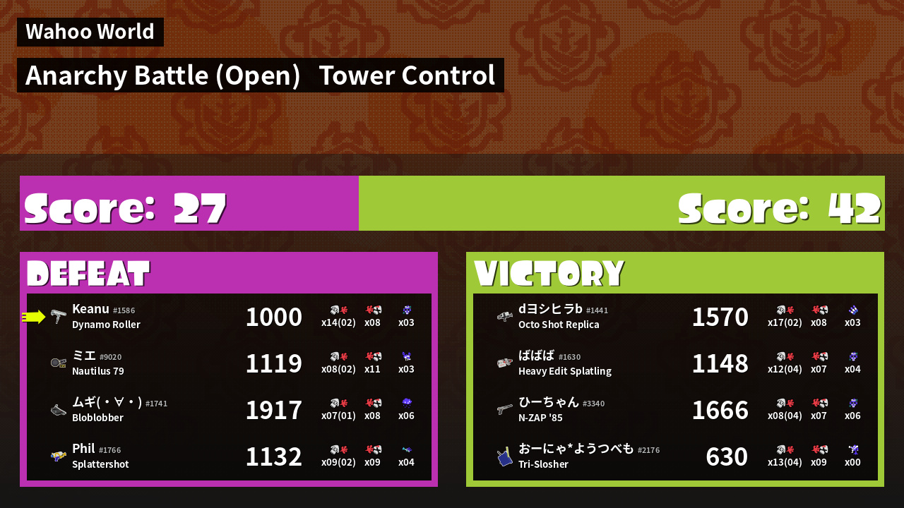 | Mode | Tower Control - Anarchy Battle (Open) | ||