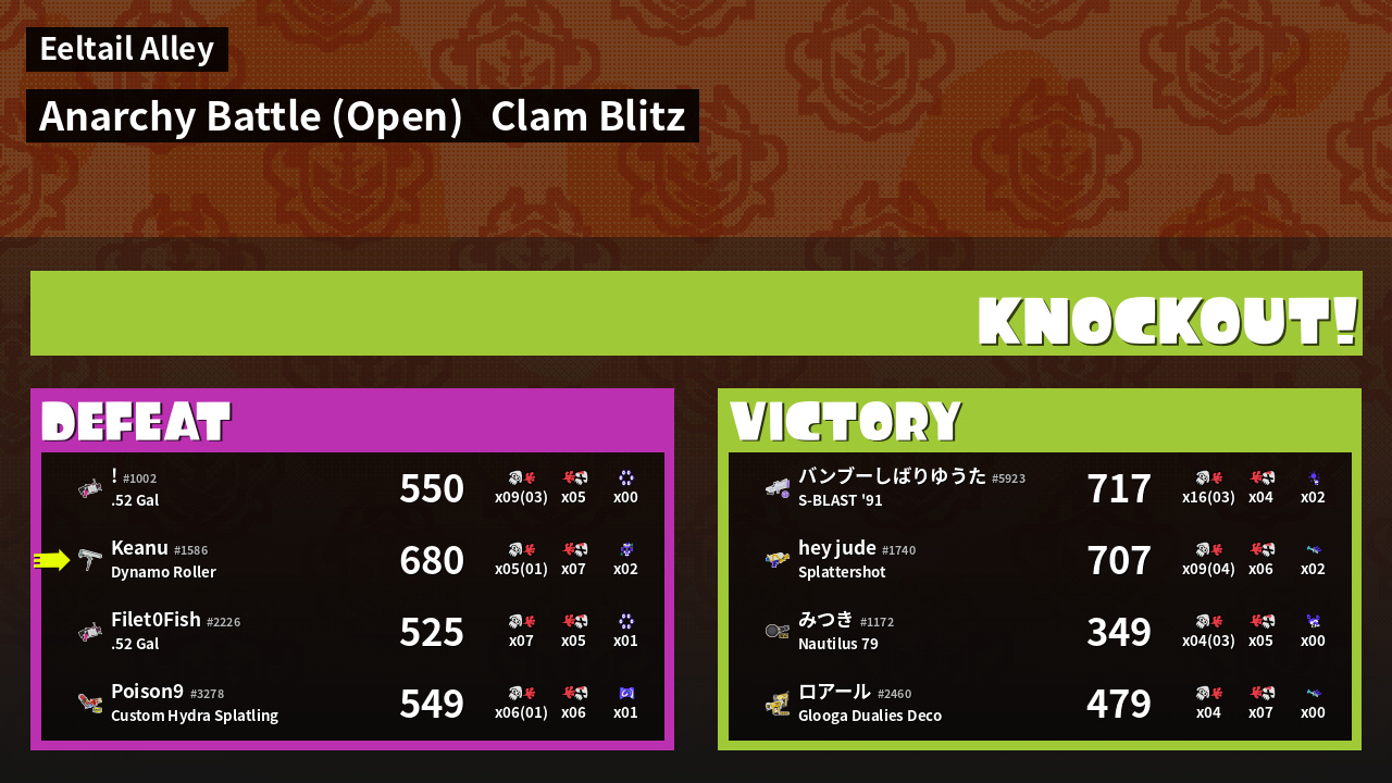 | Mode | Clam Blitz - Anarchy Battle (Open) | ||