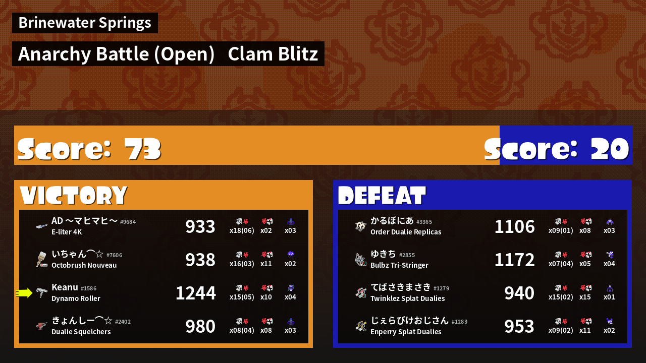 | Mode | Clam Blitz - Anarchy Battle (Open) | ||