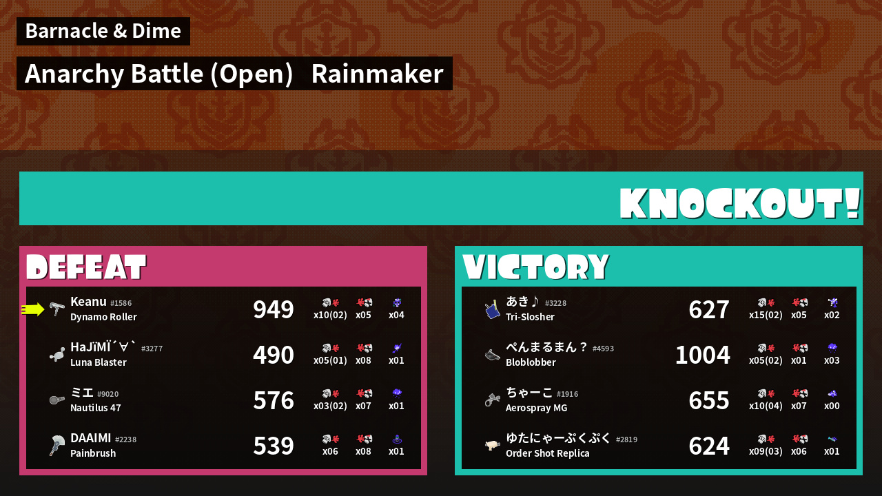 | Mode | Rainmaker - Anarchy Battle (Open) | ||