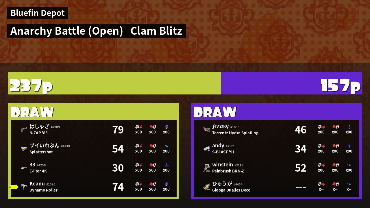 | Mode | Clam Blitz - Anarchy Battle (Open) | ||