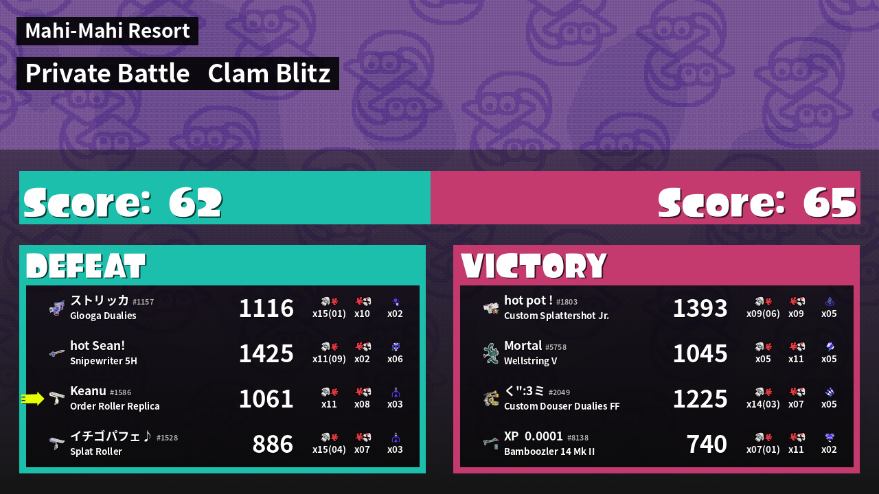 | Mode | Clam Blitz - Private Battle | ||
