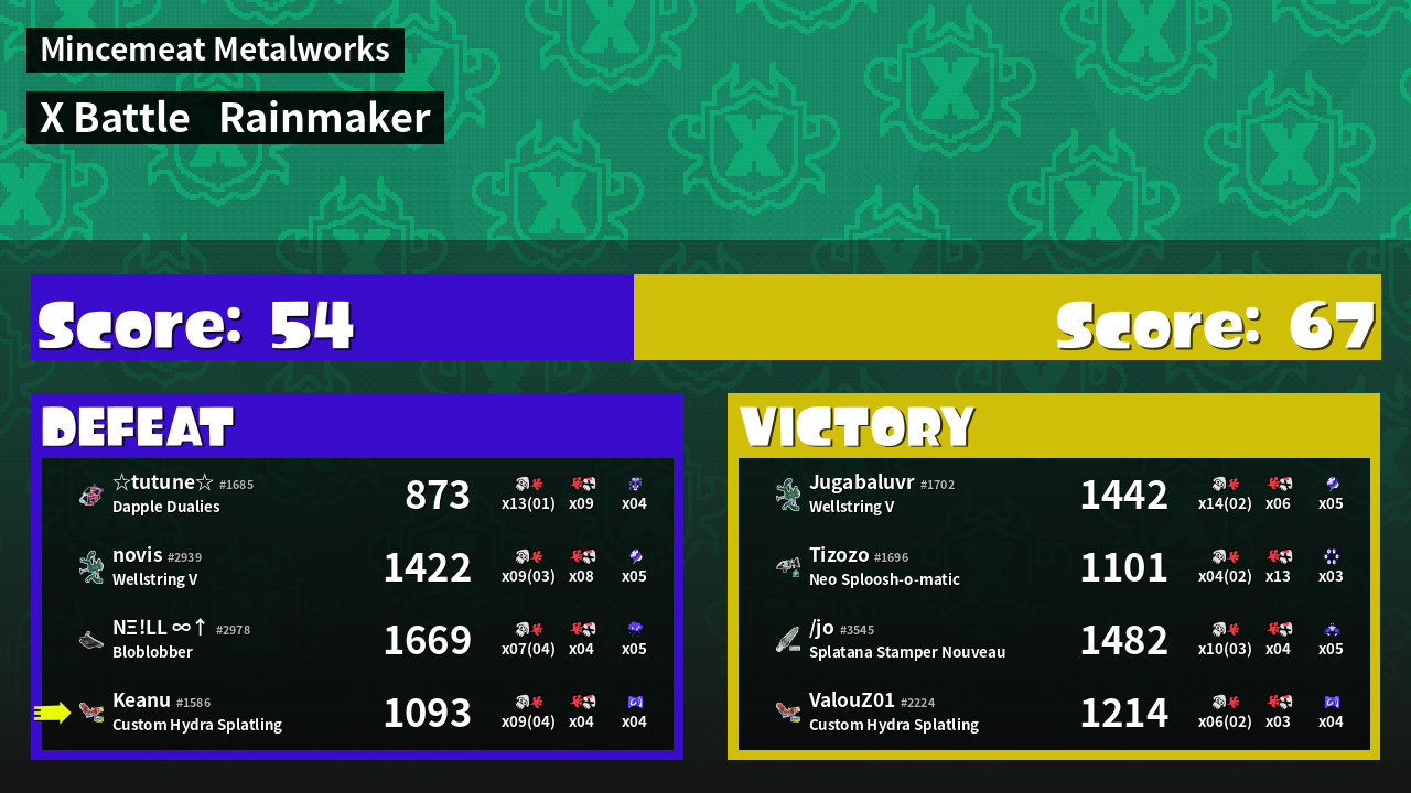 | Medals | #1 Splat Assister #1 Splattercolor Screen User #2 Overall Splatter | ||