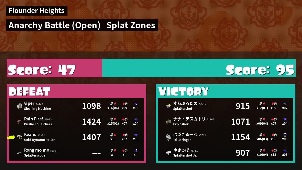 | Mode | Splat Zones - Anarchy Battle (Open) | ||
