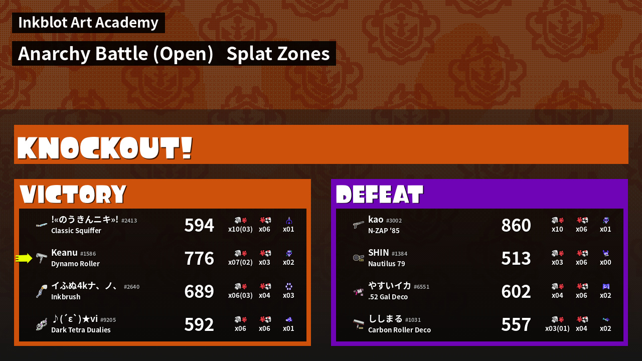 | Mode | Splat Zones - Anarchy Battle (Open) | ||