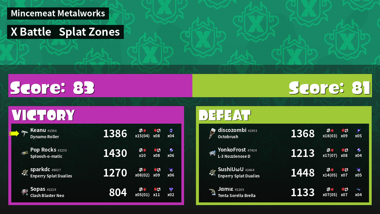 | Medals | #1 Overall Splatter #1 Splat Zone Guard #1 Popular Target | ||