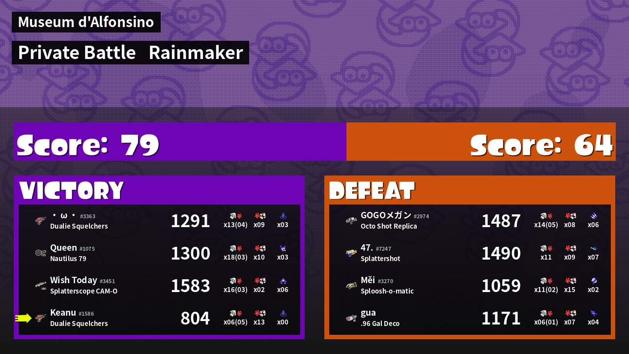 | Medals | #1 Splat Assister #1 Checkpoint Breaker #1 Rainmaker Carrier | ||
