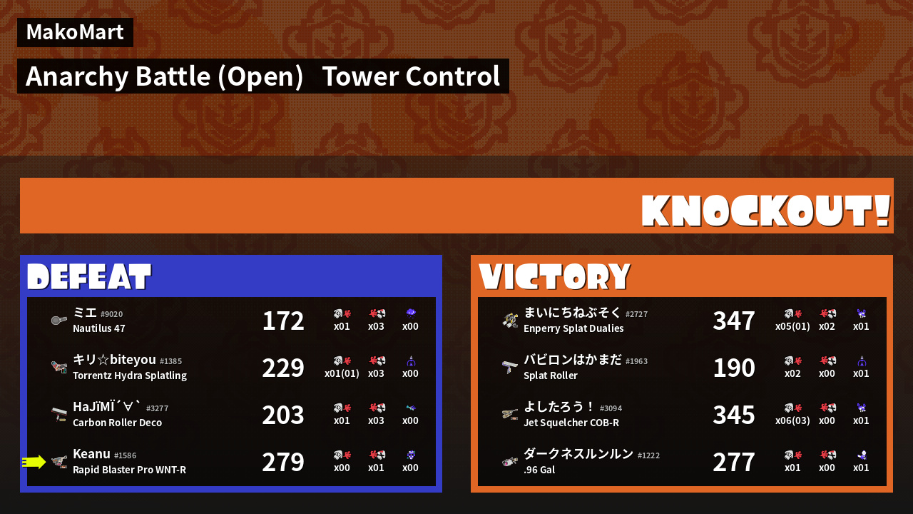 | Mode | Tower Control - Anarchy Battle (Open) | ||