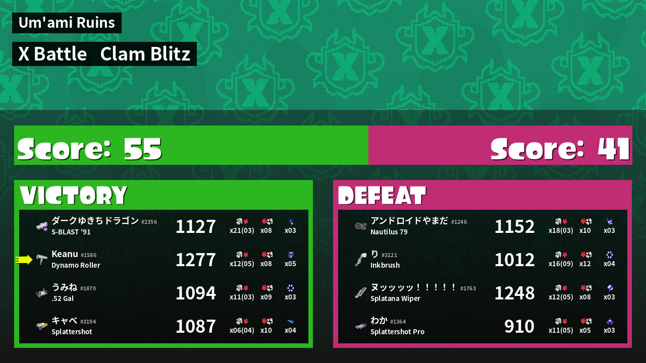 | Mode | Clam Blitz - X Battle | ||