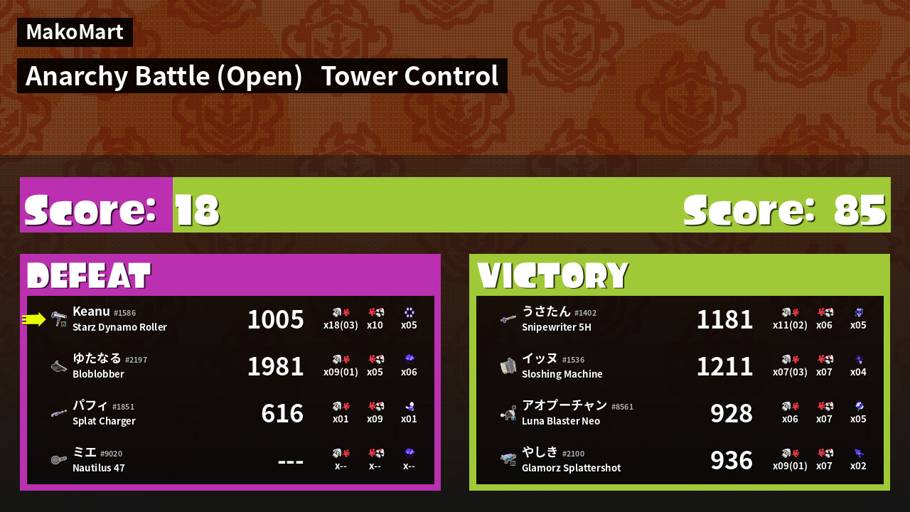 | Mode | Tower Control - Anarchy Battle (Open) | ||