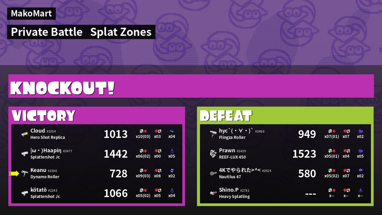 | Medals | #1 Splat Zone Guard #1 Splat Assister #1 Tacticooler User | ||
