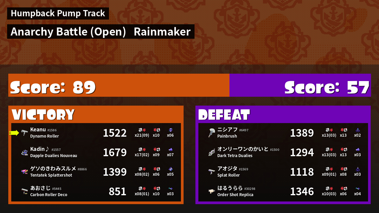| Mode | Rainmaker - Anarchy Battle (Open) | ||