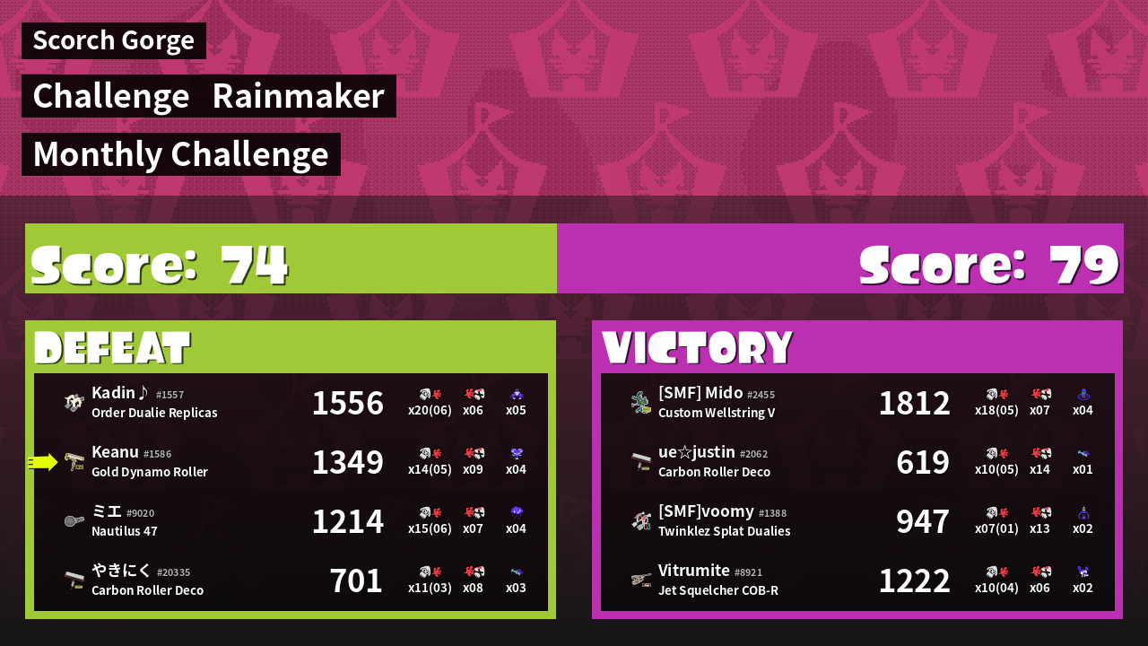 | Weapon | Gold Dynamo Roller ( Splat Bomb / Super Chump) | ||