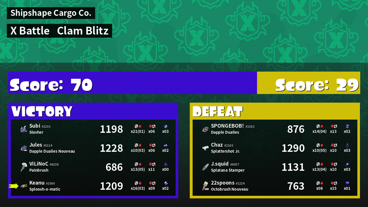 | Mode | Clam Blitz - X Battle | ||