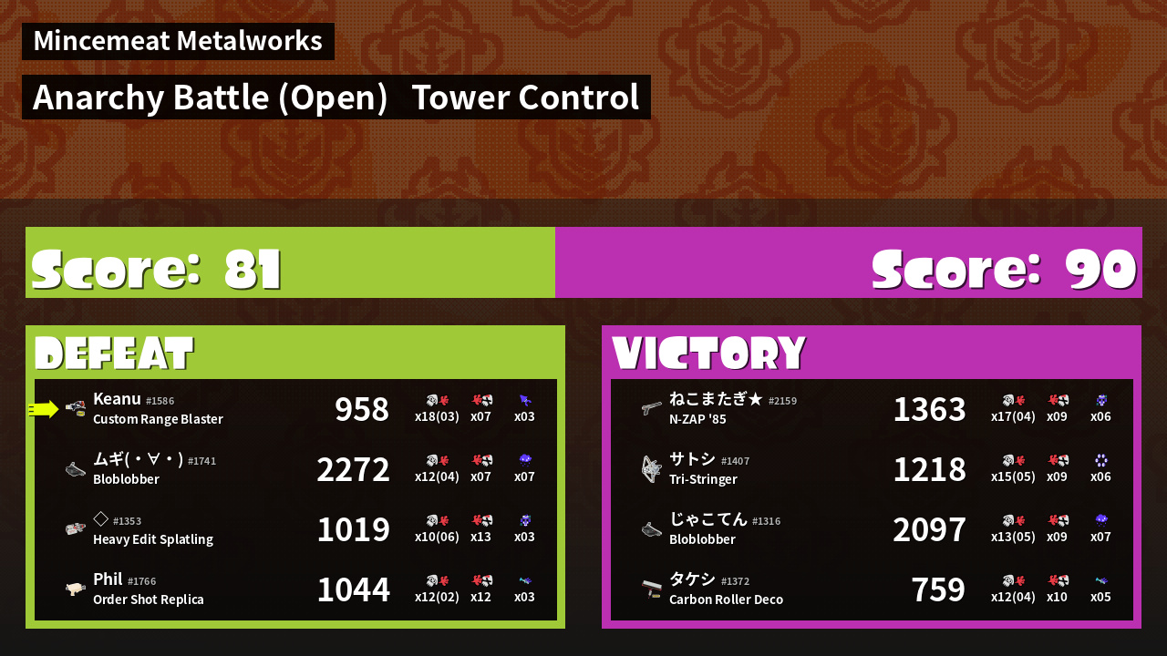 | Mode | Tower Control - Anarchy Battle (Open) | ||