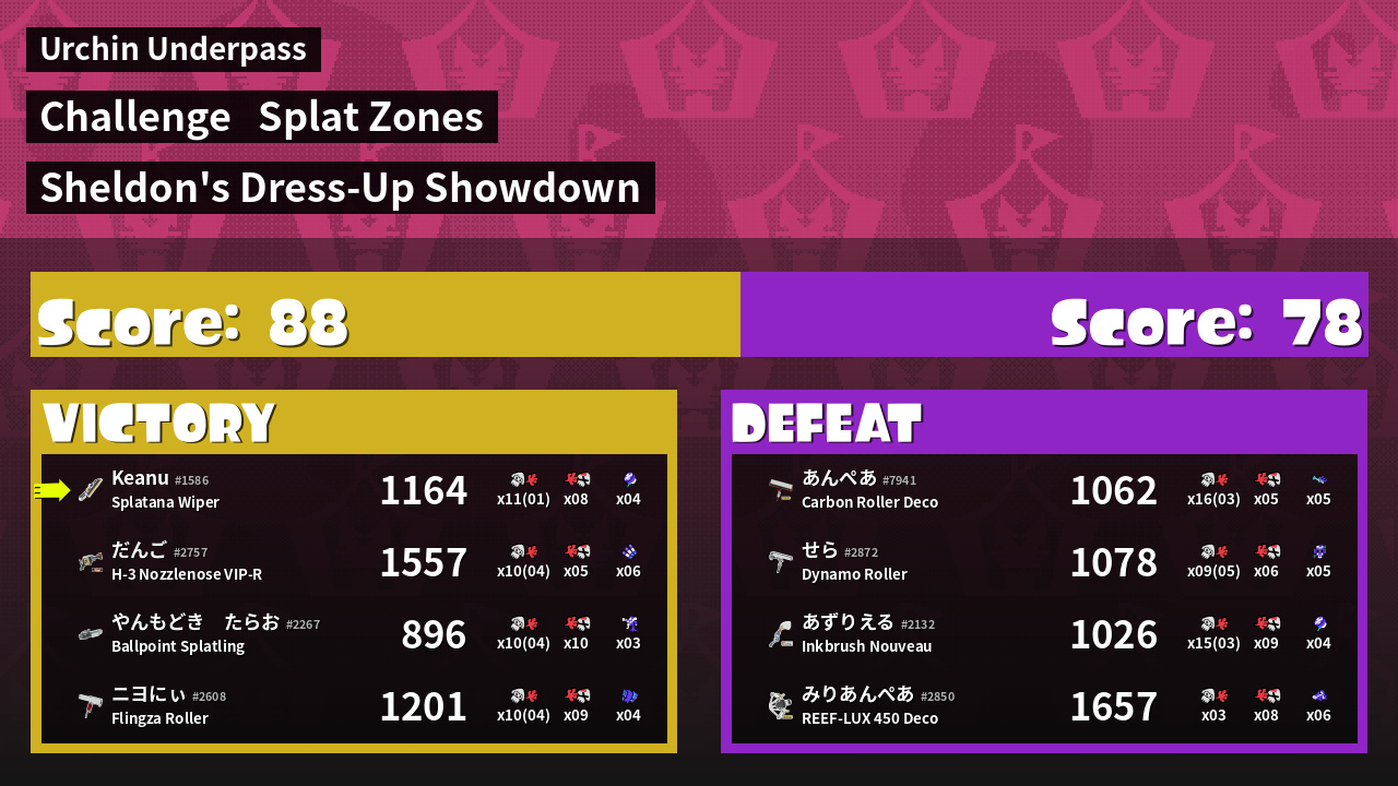 | Medals | #1 Overall Splatter #1 Splat Zone Guard #1 Popular Target | ||