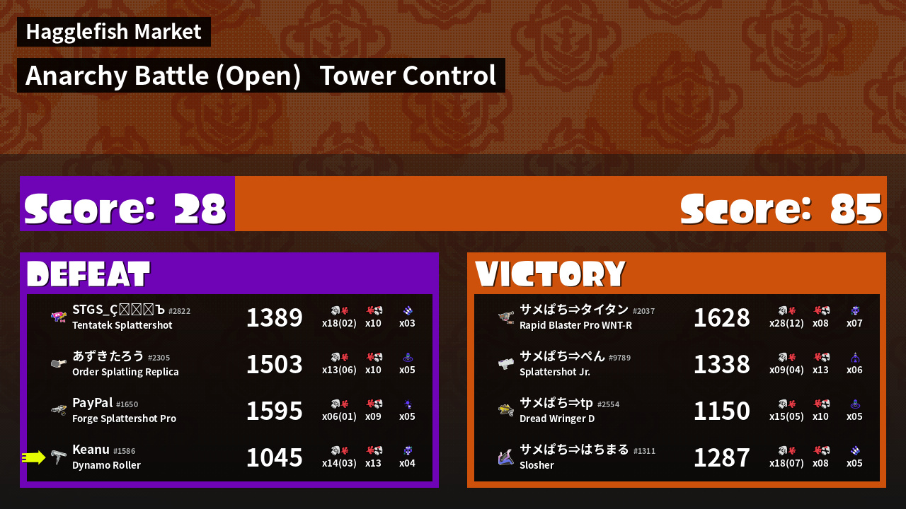 | Mode | Tower Control - Anarchy Battle (Open) | ||