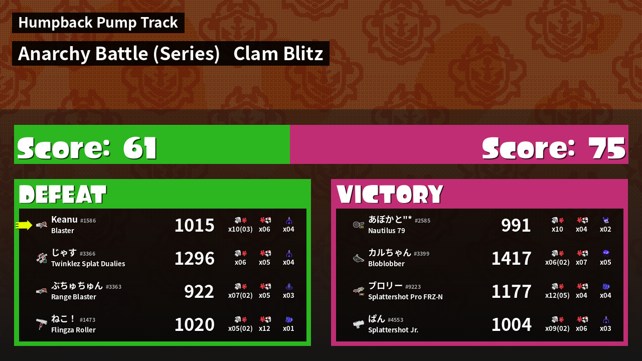 | Mode | Clam Blitz - Anarchy Battle (Series) | ||
