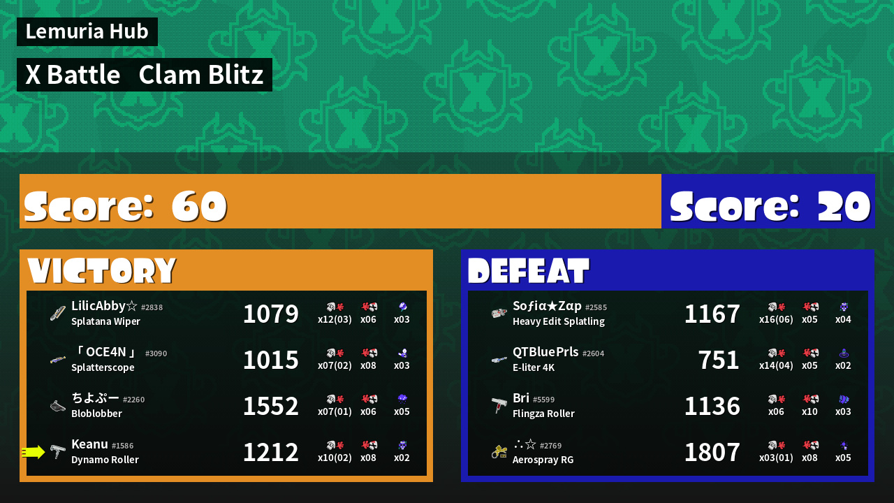 | Mode | Clam Blitz - X Battle | ||