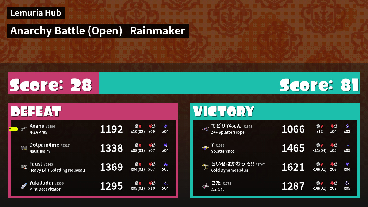 | Mode | Rainmaker - Anarchy Battle (Open) | ||