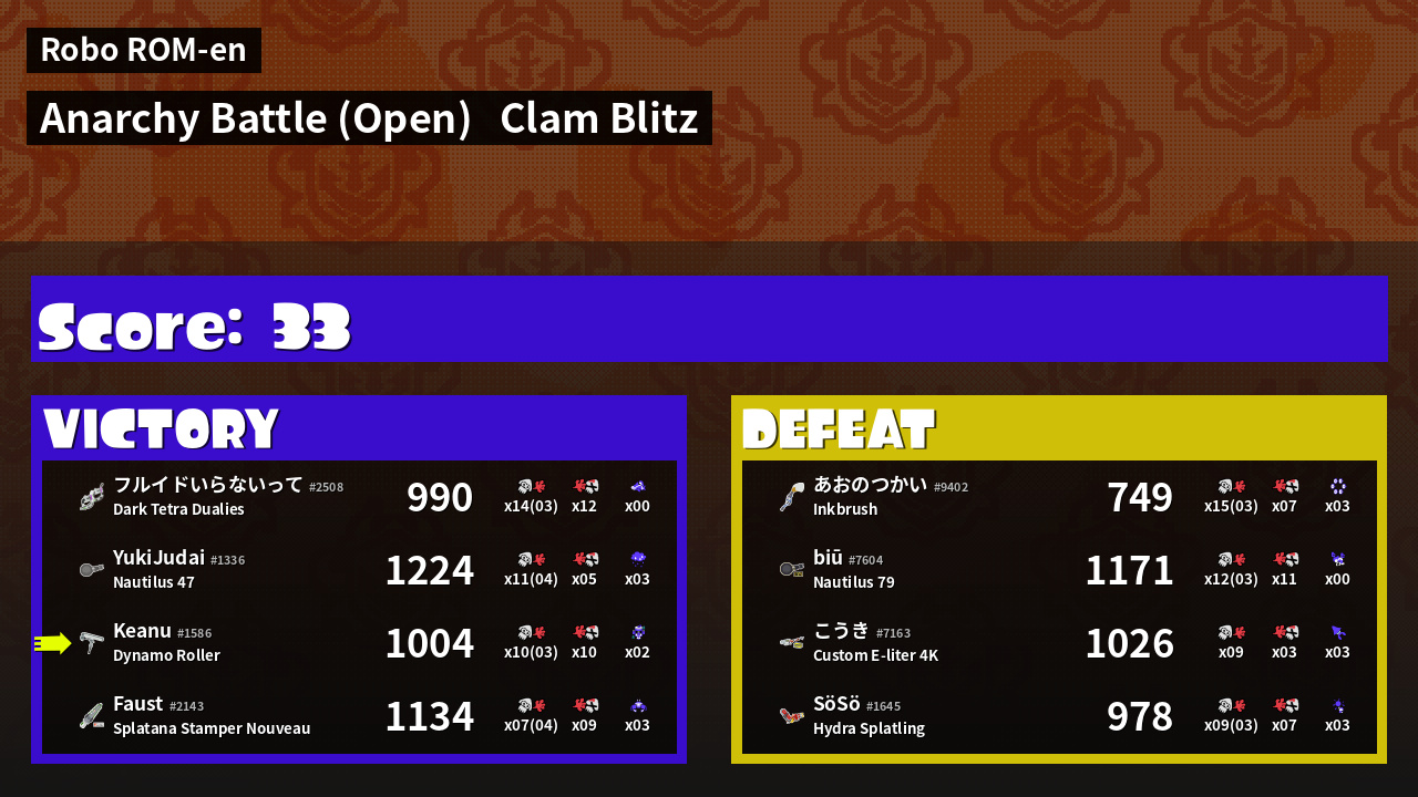 | Mode | Clam Blitz - Anarchy Battle (Open) | ||