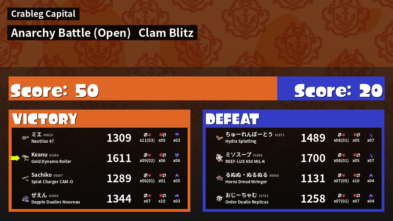 | Mode | Clam Blitz - Anarchy Battle (Open) | ||