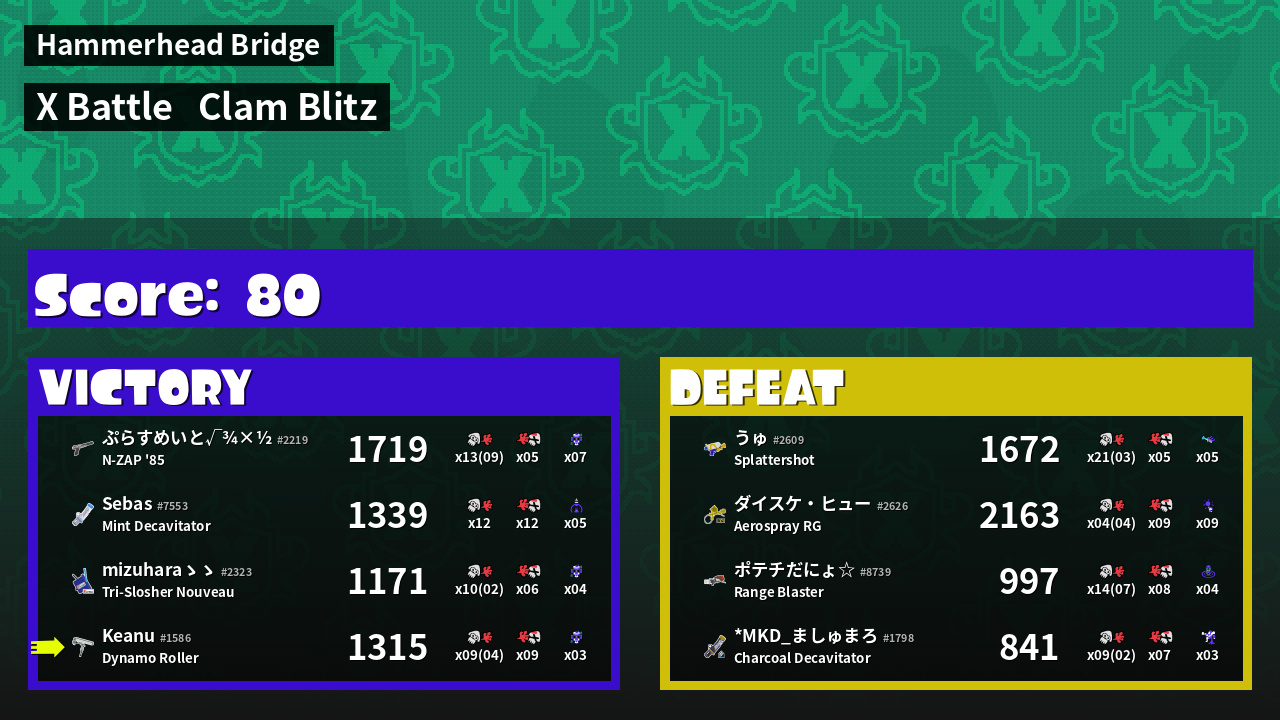 | Mode | Clam Blitz - X Battle | ||