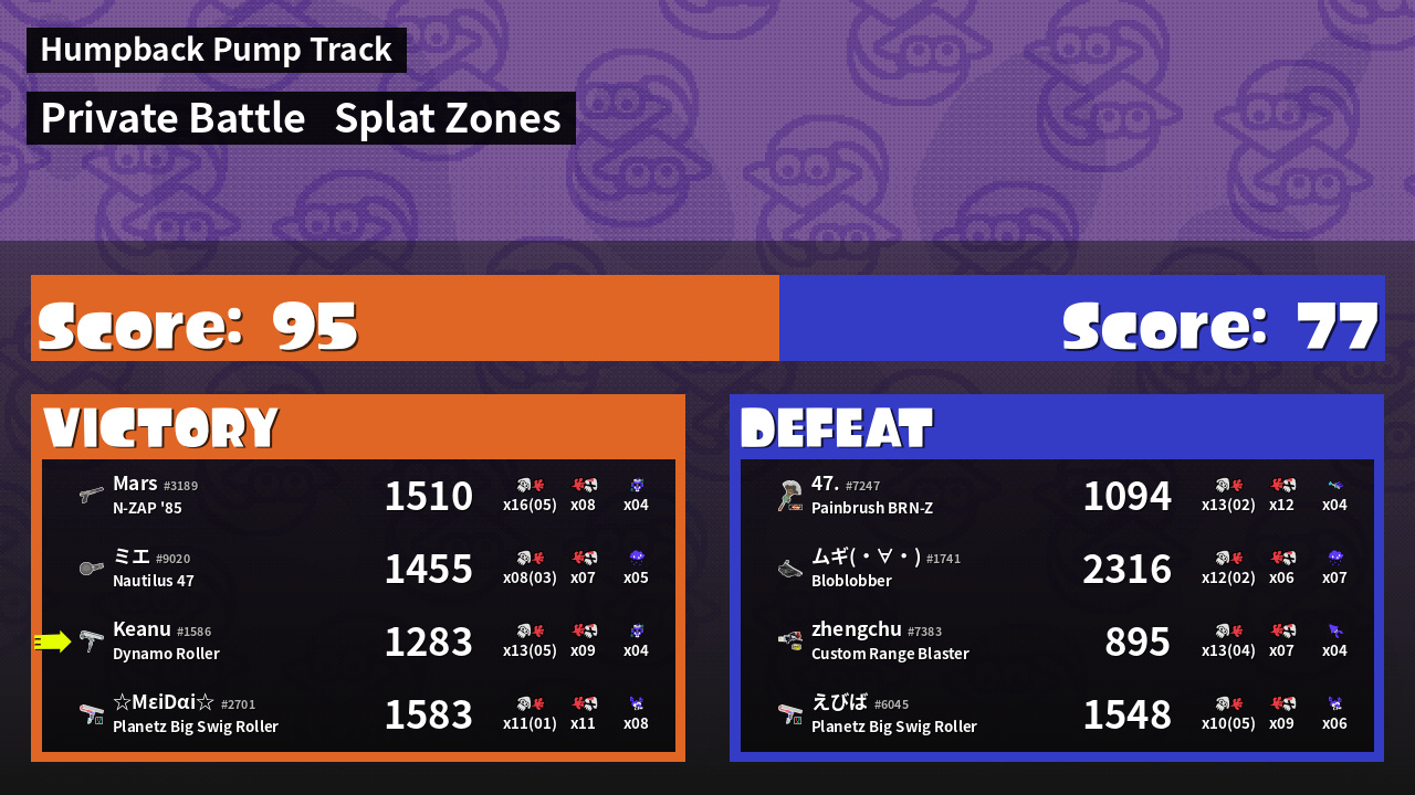| Medals | #1 Splat Assister #1 Tacticooler User #2 Overall Splatter | ||