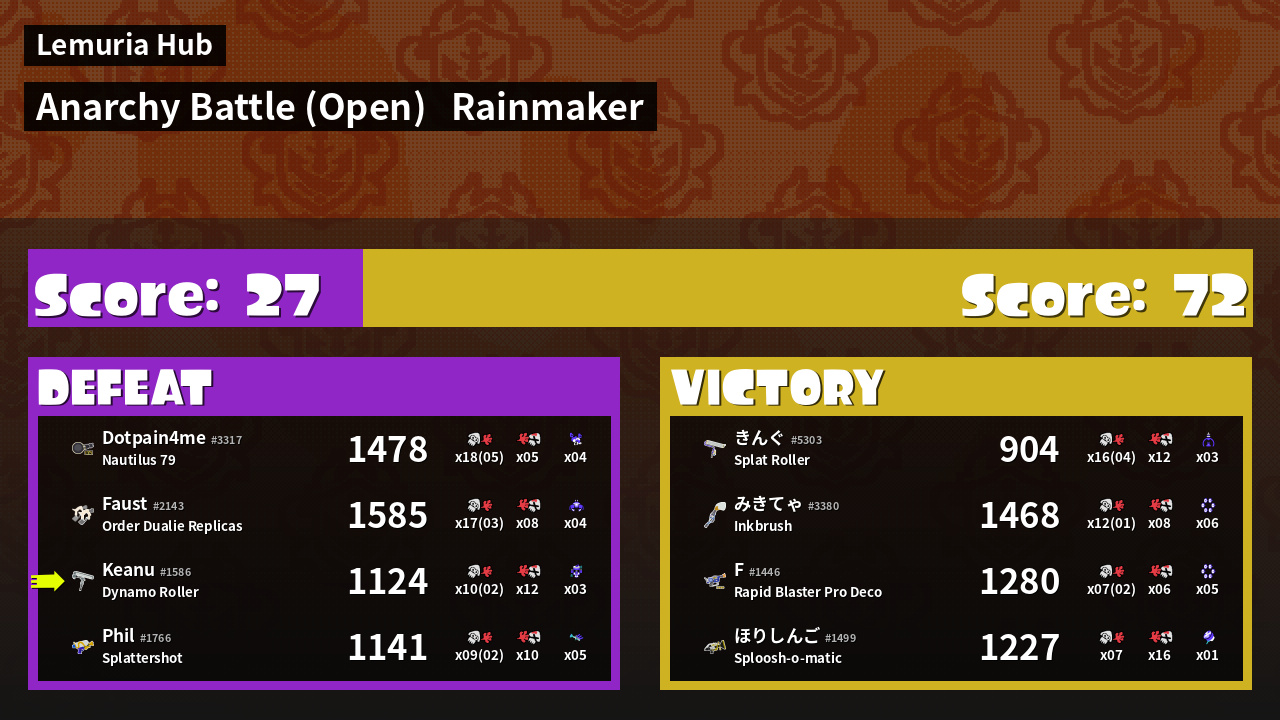 | Mode | Rainmaker - Anarchy Battle (Open) | ||